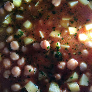 Questa ricetta vegetariana indiana è una gustosa zuppa di ceci e patate, veloce, facile da preparare ed estremamente “d’atmosfera”.